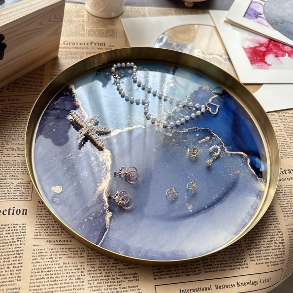 一件作品,融合了藝術與生活的美學。 酒精墨水在金盤上自由流動、暈染,每一片色澤都是獨一無二的藝術紋理。 它不僅是 首飾擺件,更能收納日常的小物,優雅而有秩序。 特別選用 ...