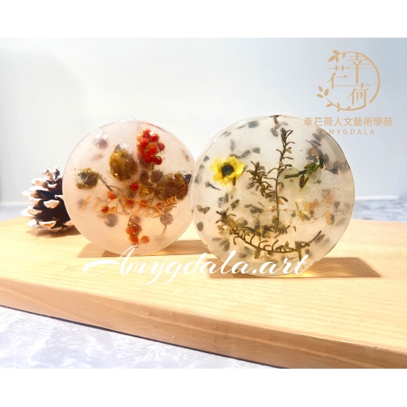 在晶透的手工皂裡,金箔閃爍、乾燥花點綴、精油調香,每一塊都是獨一無二的藝術作品。完成後的手工皂,不只可用於 日常清潔,也可作為 桌面擺飾或高質感禮品,讓生活每一天都增添 藝術感與香...