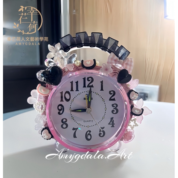 在這堂 奶油膠鬧鐘手作課程中,學員可以用柔軟細緻的奶油膠,自由擠出喜歡的造型,搭配各式可愛配件,打造專屬於自己的夢幻鬧鐘。