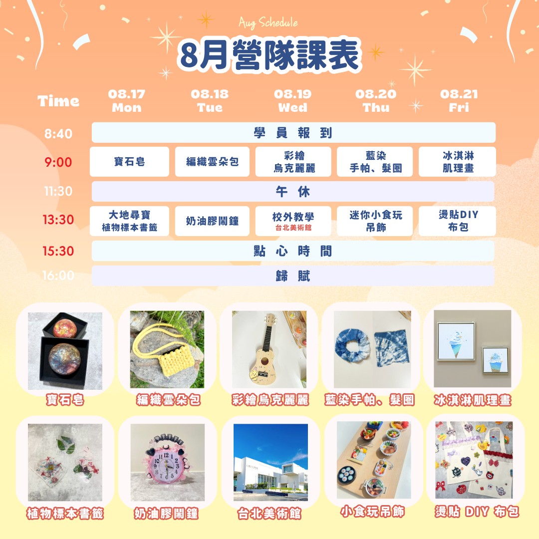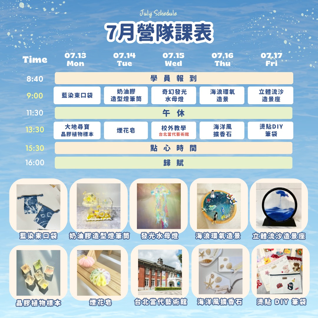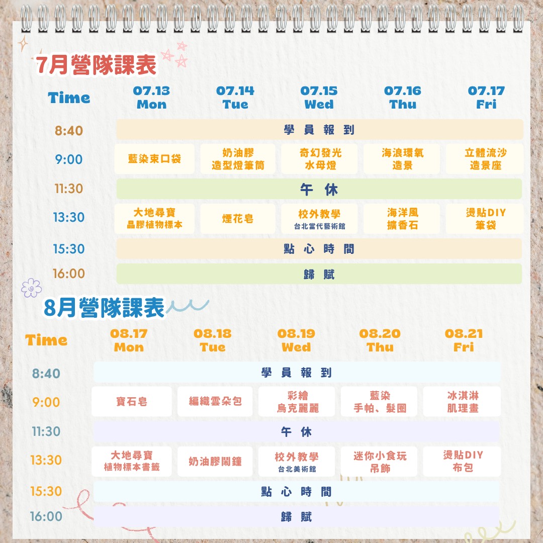 每日課程時間:08:40-16:00(含午休與點心時間)